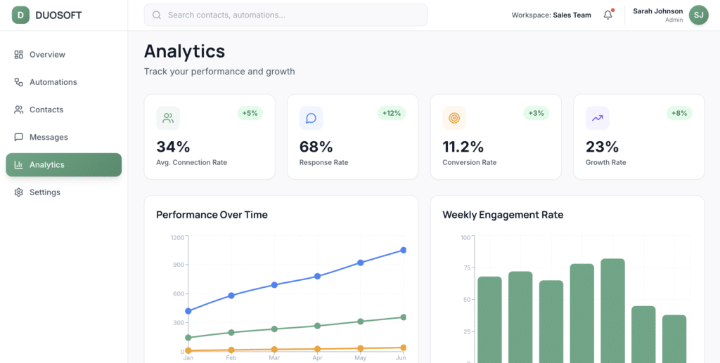 Überwache die Performance deiner Drip-Kampagnen, behalte LinkedIn- und E-Mail-Aktivitäten im Blick und analysiere die Leistung deines Teams.